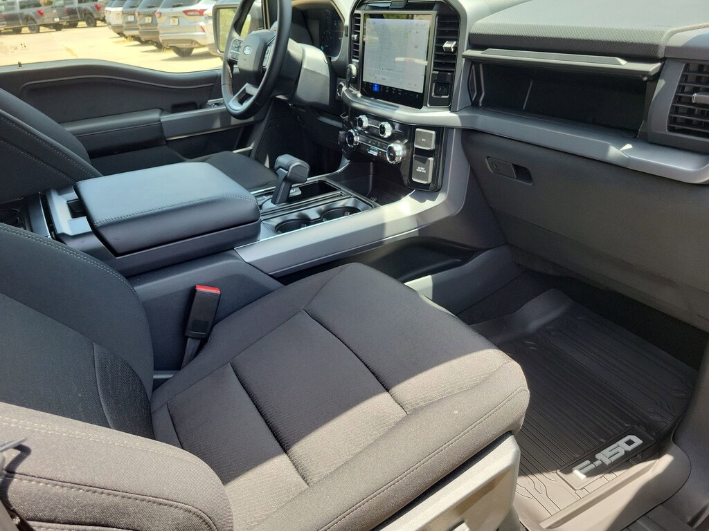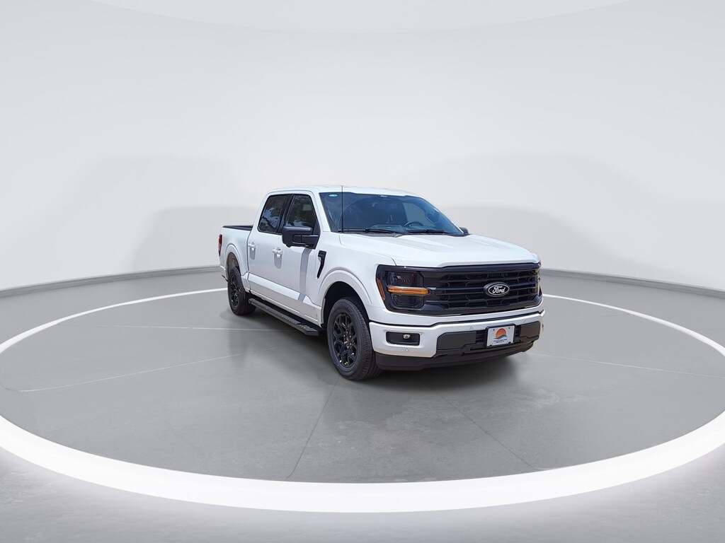 F-150 XLT, Oxford White, Black Cloth, 360 Degree Camera, 400W Cab & Bed Outlets, 6 Speakers, 6" Angular Bright Anodized Step Bar, 6" Black Running Boards, Adaptive Cruise Control w/Stop & Go, Air Conditioning, AM/FM radio: SiriusXM with 360L, Auto High-beam Headlights, Auto-Dimming Rear-View Mirror, Black Exterior Badging, Black Grille, Black Painted Grille w/Chrome Center Bar, Body-Color Front & Rear Bumpers, Brake assist, Chrome Door & Tailgate Handles, Chrome Single-Tip Exhaust, Cloth 40/Console/40 Front Seats, Connected Navigation, Dark Interior Appliques, Delay-off headlights, Driver State Detection, Dual-Zone Electronic Automatic Temperature Control, Electronic Locking w/3.73 Axle Ratio, Electronic Stability Control, Equipment Group 302A Mid, Evasive Steering Assist, Floor Shifter, Ford Co-Pilot360 Assist 2.0, Front fog lights, Front Parking Sensors, Fully automatic headlights, GVWR: 6,426 lbs Payload Package, Heated Front Seats, Intelligent Access w/Push Button Start, Power Glass Heated Sideview Mirrors, Power-Sliding Rear Window, Radio data system, Radio: AM/FM Stereo w/SiriusXM 360L, Rear Parking Sensors, Rear window defroster, Remote Start System w/Remote Tailgate Release, SYNC 4 w/Enhanced Voice Recognition, Telescoping steering wheel, Tilt steering wheel, Towing Technology, Unique Sport Cloth 40/Console/40 Front-Seats, Wheels: 18" Gloss Black, Wrapped Steering Wheel, XLT Black Appearance Package.