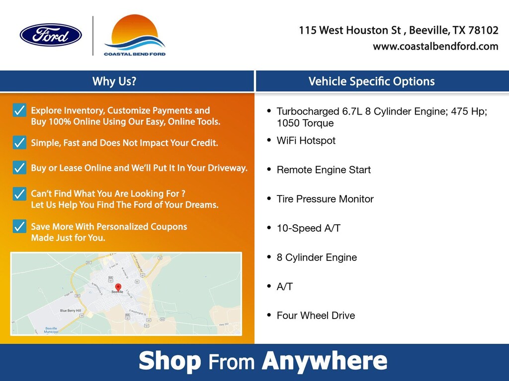 Coastal Bend Ford is dedicated to your satisfaction before, during, and after your purchase. We'll go the extra mile to take care of you.